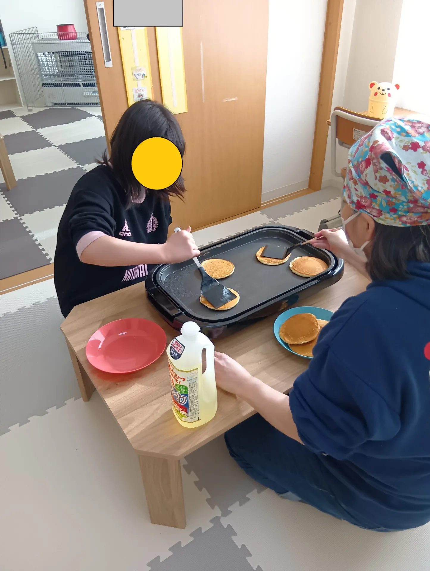 内容としては、パンケーキ作りです。
