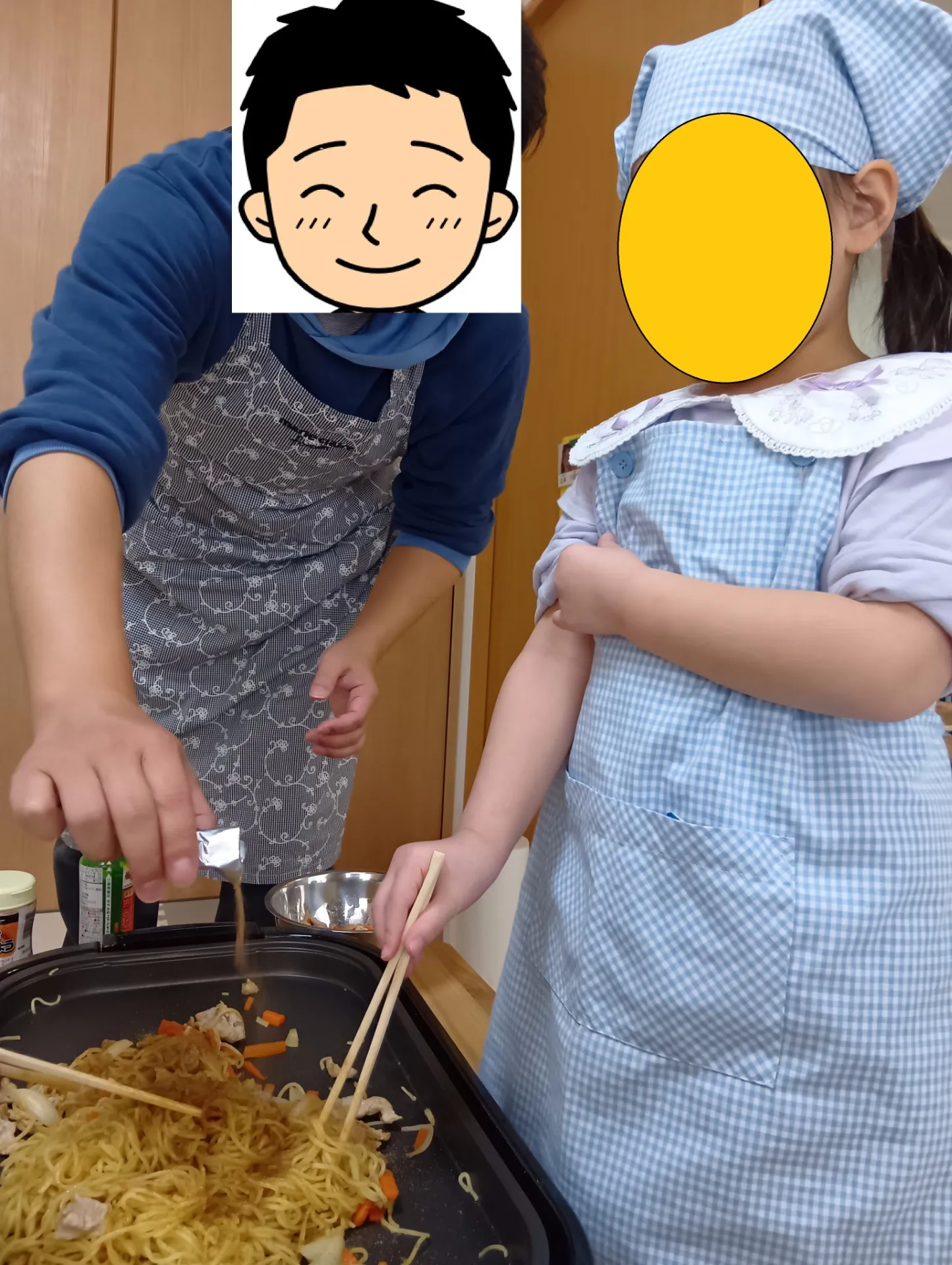 焼きそば作りでは、切る、炒めるという火を使った作業を組み込んで、自分たちで作っている経験をしてもらいました。