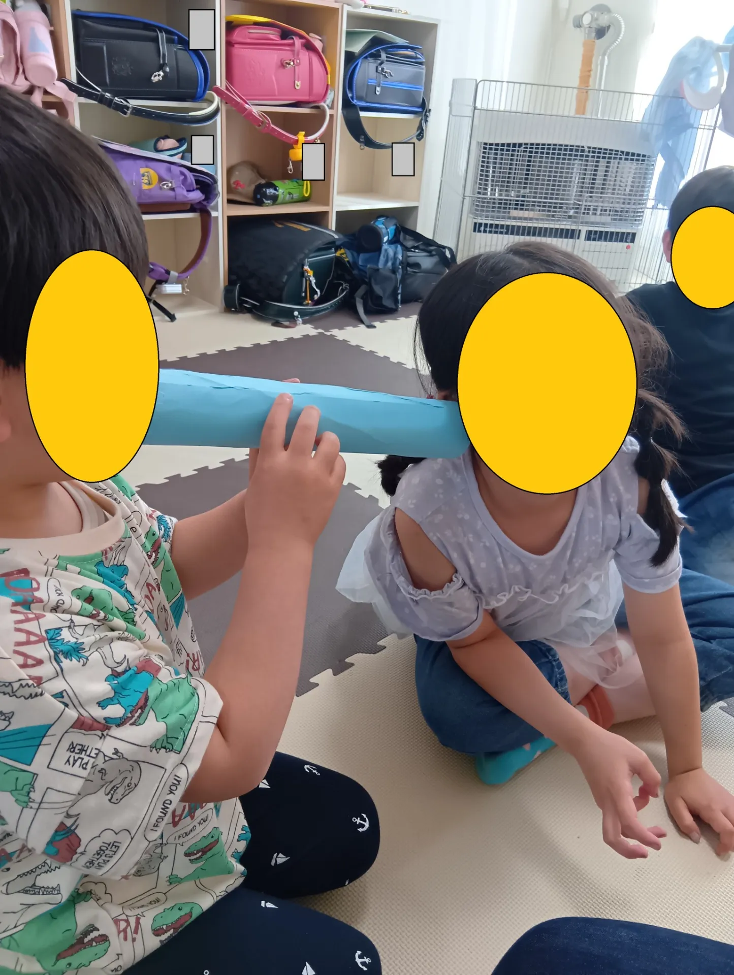 次は背中に指で文字を書いて当てる伝言ゲームなんかも面白そう(´▽`*)